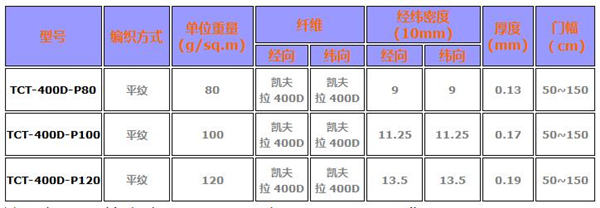 400D 芳綸纖維布常用規(guī)格: